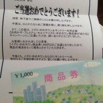 これは、お友達が当てた商品券~!去年、東北の吉方位へ行ったご主人の名前で書いてだしたら、当たったとか。 当選~、めでたい響き~。確か前は、5000円、懸賞で当たっていたよね~、すごいわ~、私、懸賞当たったことない~。 他にも、大型テレビを抽選で当てた ...